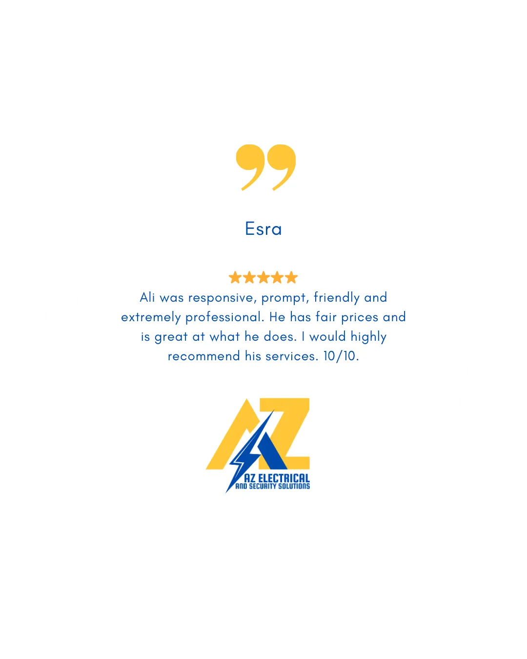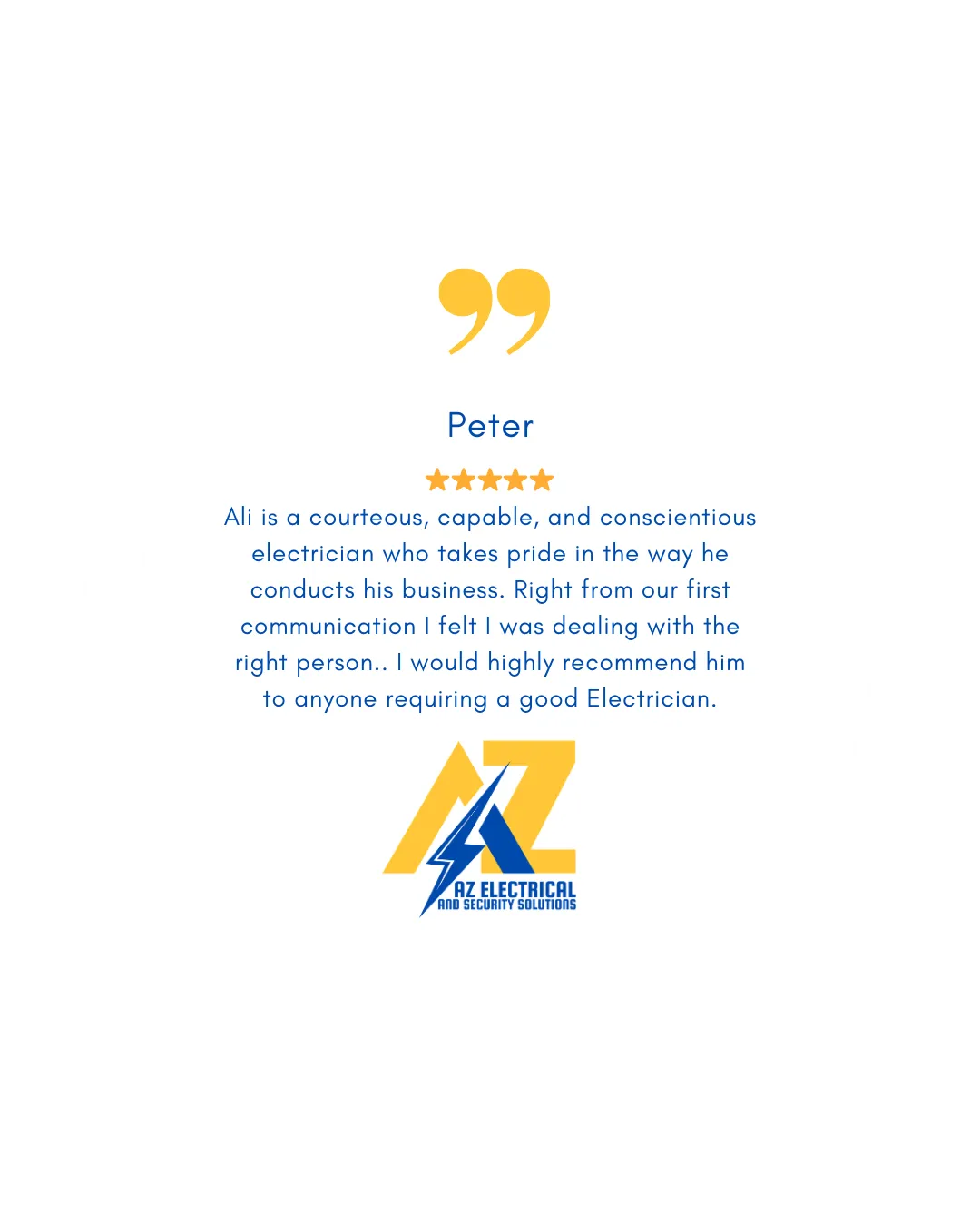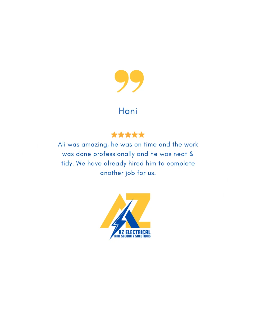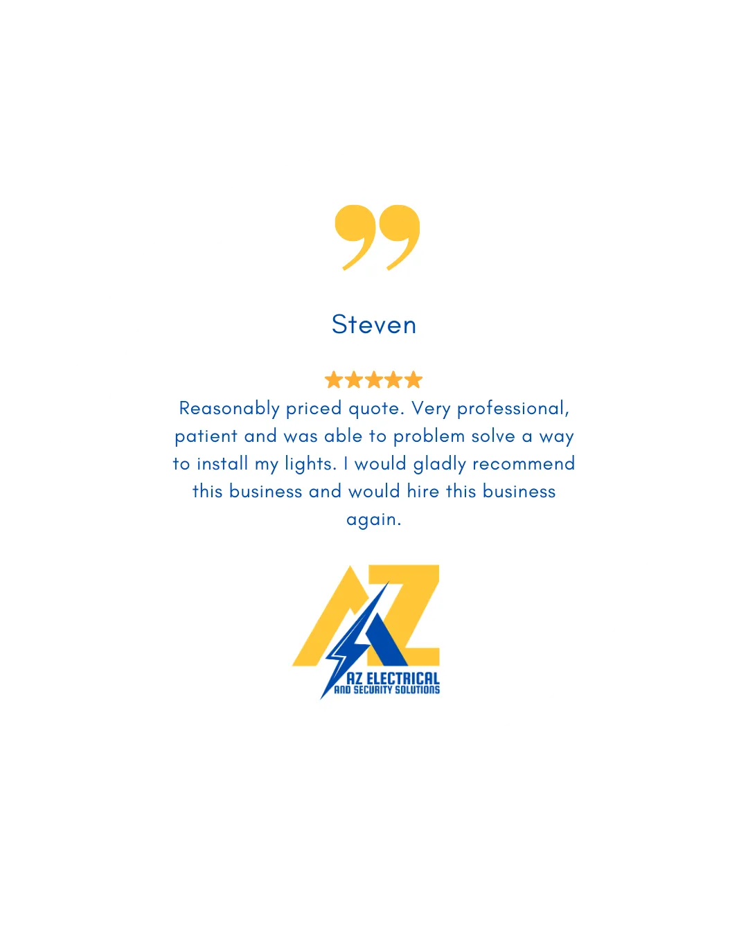 I've been an electrician for the past 10 years and I've started AZ Electrical and Security Solutions for my passion for the electrical trade, and have since been able to help so many valued clients achieve their visions for their homes and businesses.